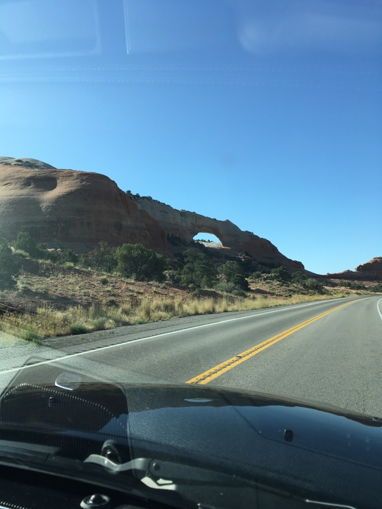 On Day 29, we left beautiful Moab, Utah and travelled about 130 miles, first on 191 South (actually paralleling Canyonlands to the west) and then, at Monticello, picking up 491 East into Colorado. The drive was gorgeous and a special highlight was seeing Wilson Arch from the truck, as if the Arches were bidding us farewell as we turned the corner of our route’s southwestern most point and started moving eastward.
