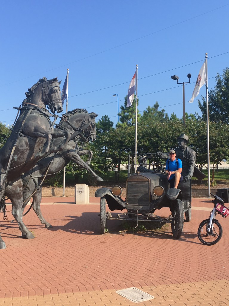 We had one more day in Tulsa so on Day 38, we got out early and rented “This Machine” bikes on Riverview Drive near The Gathering Place. Using an app on my phone, we were able to unlock 2 bikes and rent them for only $5 each. Technology is a beautiful thing…